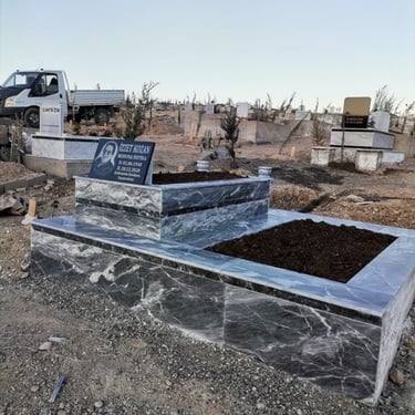 Mermer, granit ve beton mezar modellerinde kaliteli işçilik.